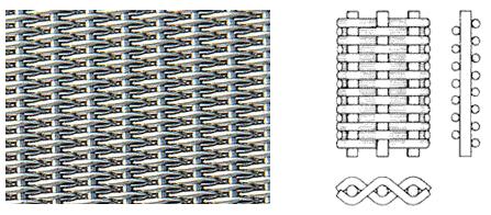 Каждая проволока утка проходит поочередно над и под каждой парой проволок основы и наоборот.Такое переплетение позволяет использовать проволоку большего диаметра, чем при полотняном переплетении с аналогичным количеством ячеек.Это позволяет использовать данную проволочную ткань для больших нагрузок и более тонкой фильтрации.